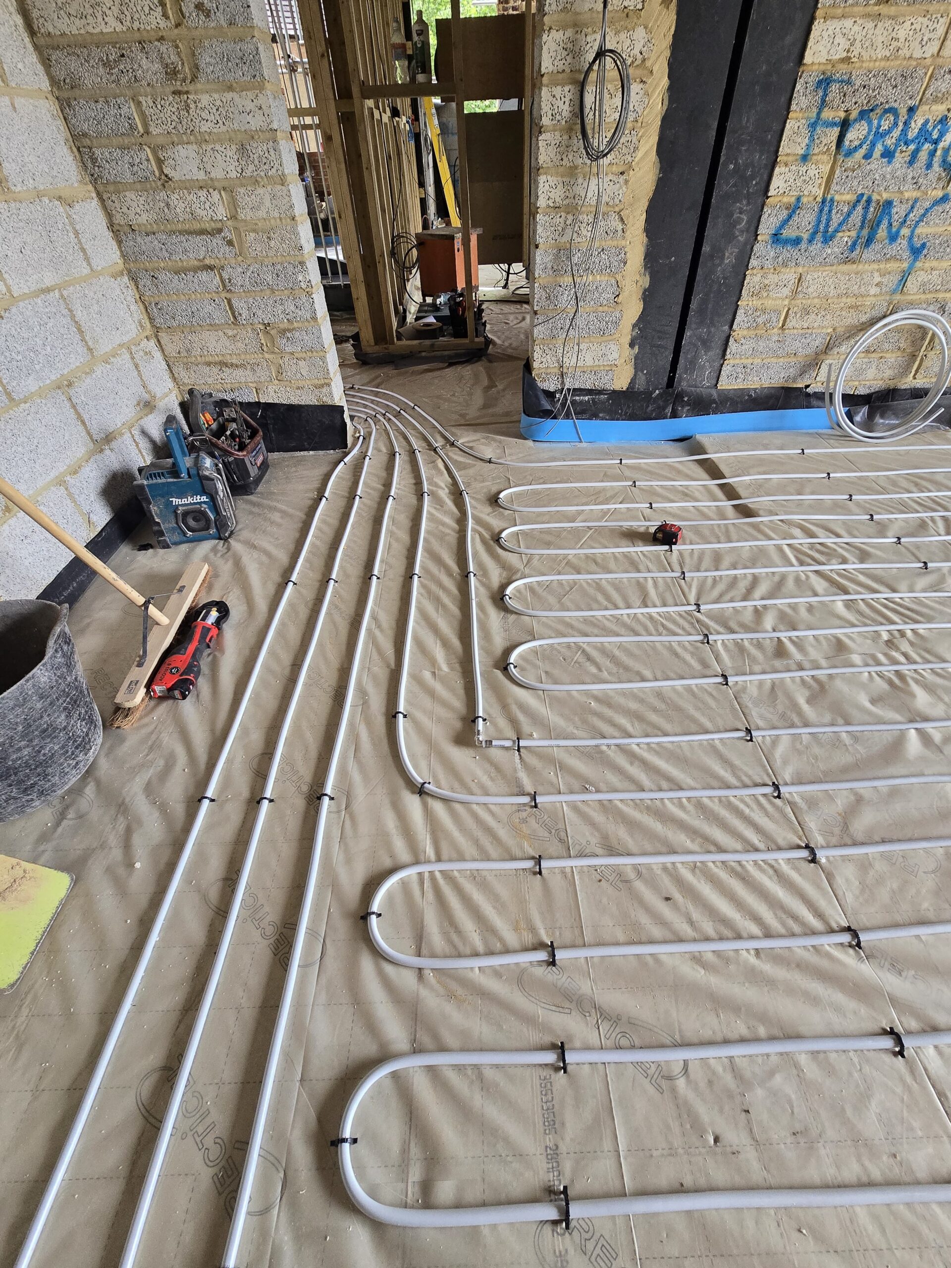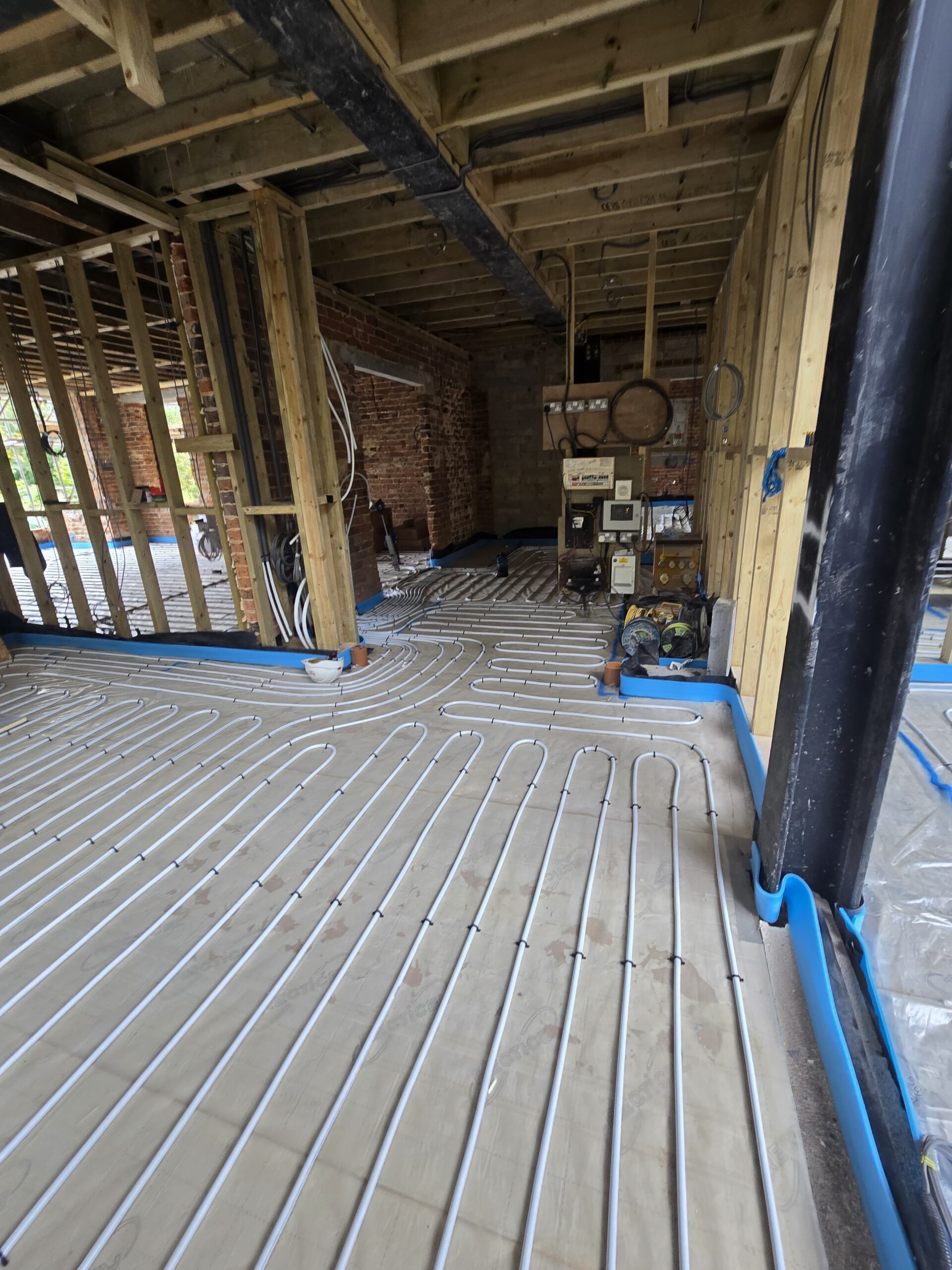 We recently completed a full plumbing and heating installation for a property in Farnham, delivering a high-quality first fix alongside a modern heating system. From the outset, we installed all first fix pipework to ensure a clean and efficient layout throughout the property. At the same time, we fitted a full underfloor heating system across the ground floor, providing consistent and energy-efficient warmth.