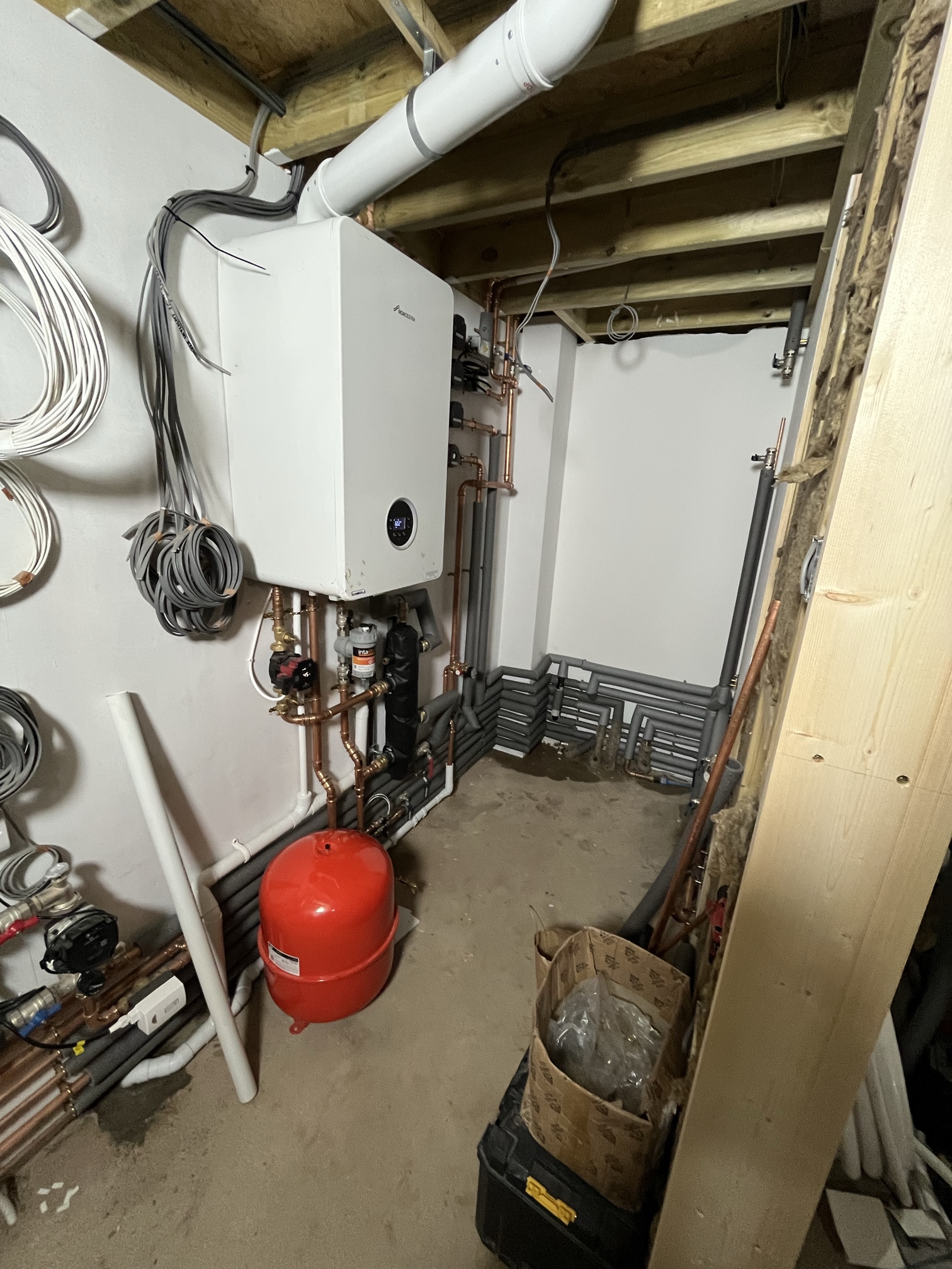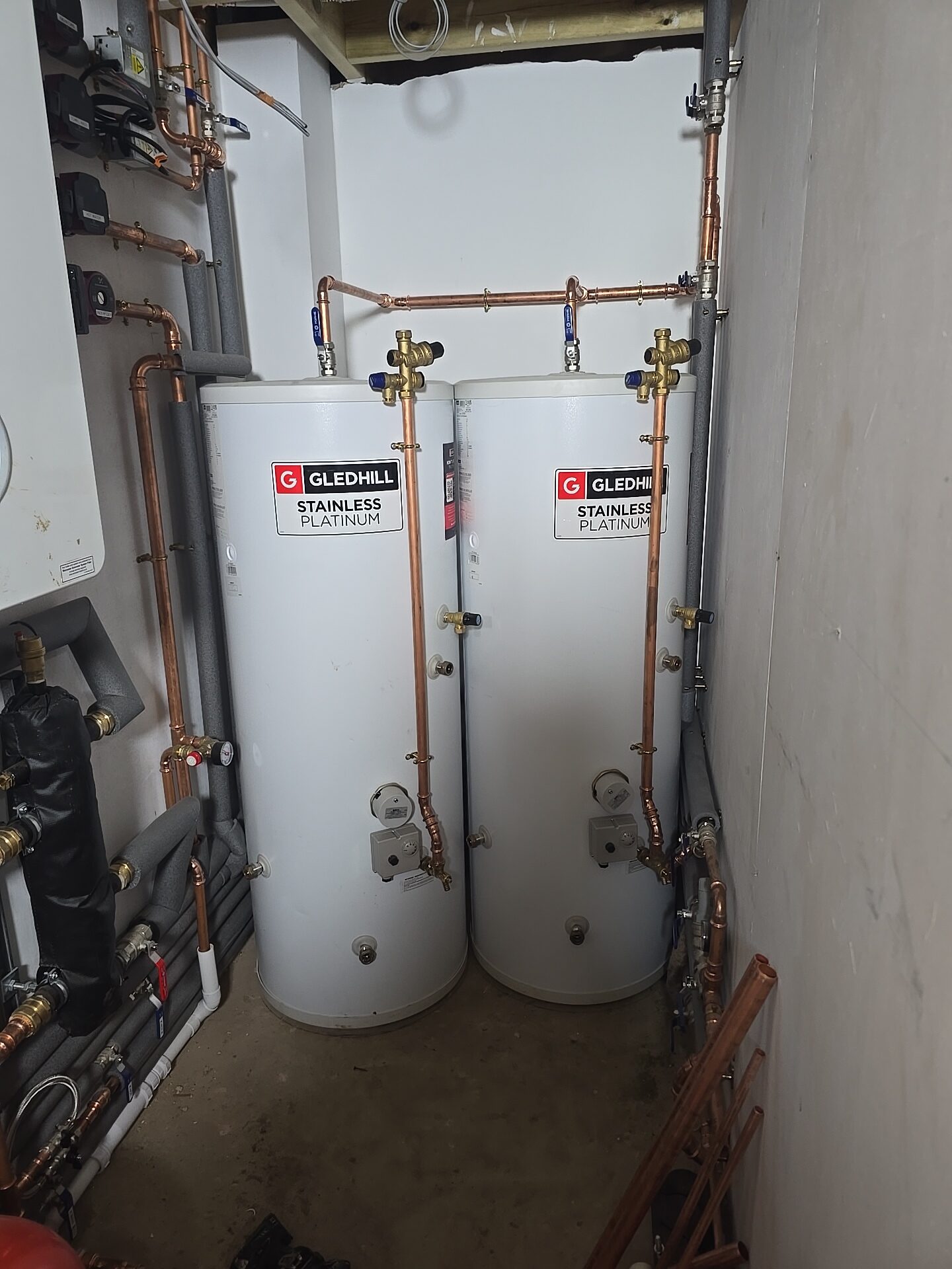 To complete the system, we installed a boiler with twin hot water cylinders, ensuring strong water pressure and reliable performance for the whole home. As a result, the property now benefits from a fully integrated, future-ready heating and plumbing setup.